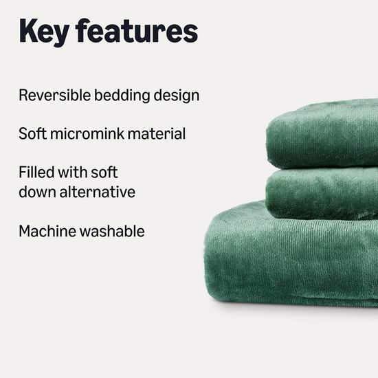 这款被子和枕套均双面可用,一面是柔软的超细纤维涤纶面料,另一面是白色仿羊羔绒面料。箱形缝线设计使柔软的仿羽绒填充物固定到位,分布均匀,重量适中,四季皆宜,带来舒适温暖的睡眠体验。可机洗,低温烘干,方便打理,不可漂白。