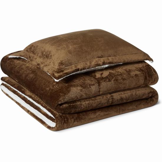 白菜价!历史新低!Amazon Basics Twin 双面仿羊羔绒被子+枕套套装2.6折 11.08加元!2色可选!