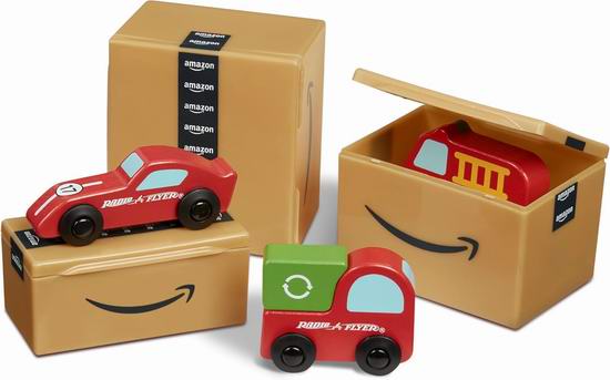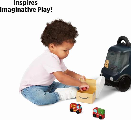 Radio Flyer 的亚马逊送货车可激发孩子们的想象力,带来充满乐趣的角色扮演体验。设计灵感源自真实的亚马逊送货车,让您的孩子在家中滑行玩耍时,仿佛化身真正的送货司机。玩具包含三个迷你亚马逊包裹和三个木制玩具。固定式把手有助于小骑手学习保持平衡。座椅下方的储物空间可方便地存放附赠的迷你玩具和包裹。室内外皆宜。最大承重50磅(22.7公斤)。适合2岁及以上儿童。