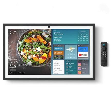 一款21英寸1080p全高清的大屏厨房智能显示音箱,内置Fire TV与Alexa并支持Alexa+抢先体验,可通过可自定义小部件(如日历、购物清单、天气等)把主屏变成家庭事务中心;借助Fire TV与随附遥控器可观看Prime Video、Netflix、YouTube、Apple TV等应用内容(部分需订阅),并支持Active Media快速把音乐扩展到家中其他房间;同时可作为智能家居控制中枢,通过语音或触控集中控制灯光、查看摄像头等,并可切换为数码相框展示照片;视频通话方面配备居中自动取景摄像头、广角视野与3.3倍变焦及降噪技术,通话更清晰自然;隐私上提供麦克风/摄像头关闭按钮与内置摄像头遮挡盖等多重控制。