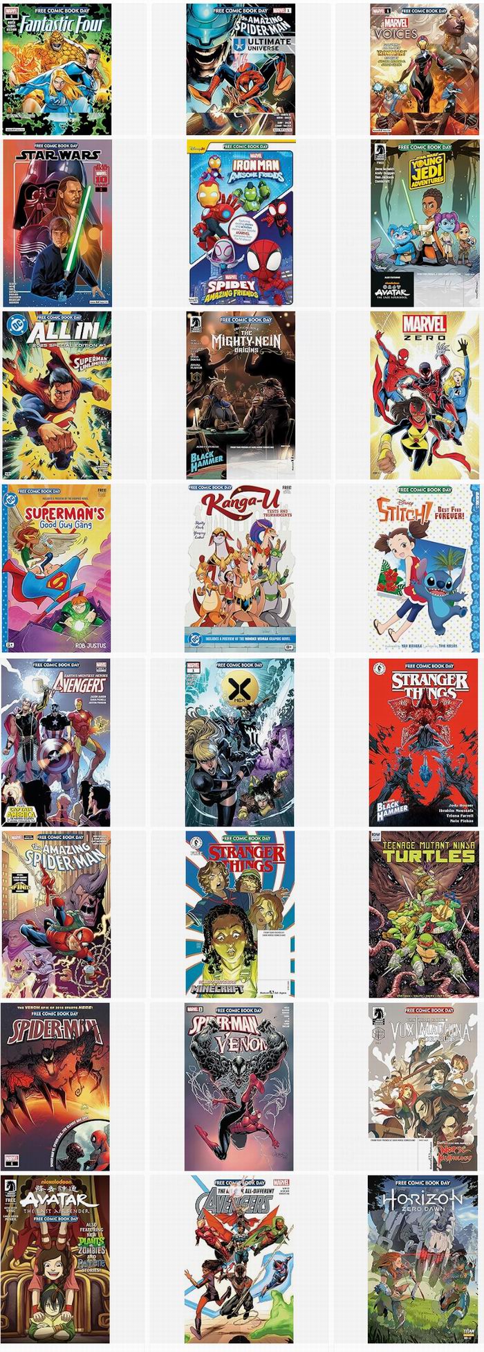免费漫画日是北美漫画业每年一次的推广活动,旨在吸引新读者到独立的漫画书店。它通常与超级英雄电影的发行相辅相成,每年有两千多家参与商店赠送数百万本漫画书。