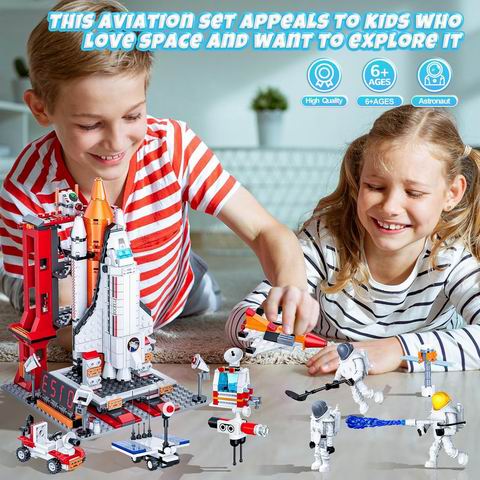 专为 6–12 岁儿童设计,包含火箭、航天飞机、发射塔、地面平台、卫星及 3 个可动宇航员人偶,支持多种自由拼搭与角色扮演玩法。套装采用 855 片高品质无 BPA ABS 积木,兼容主流积木品牌,拼搭说明清晰易懂,既能激发孩子对航天与工程的兴趣,又能锻炼动手能力、逻辑思维和创造力。产品通过多项美国玩具安全认证,安全耐用,是复活节彩蛋篮、生日、圣诞节及各类节日送给男孩女孩的理想 STEM 教育礼物。