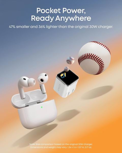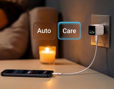 智能显示屏与 180° 可折叠插头,体积较原装 30W 充电器小约 47%、轻约 36%,便于随身携带与狭小空间使用。支持最高 45W 快充,并根据电量智能调节输出功率,iPhone 17 Pro 约 20 分钟可充至 50%(实验室数据)。具备智能 iPhone 识别与关爱模式,可降低充电温度(TÜV 认证),更适合夜间充电;显示屏支持单击查看状态、双击切换模式、长按旋转 180°,夜间自动调暗。单 USB-C 接口(不含数据线),兼容 iPhone 17/16/15 系列及指定 iPad Pro 机型。随附快速入门指南与 18 个月保修。
