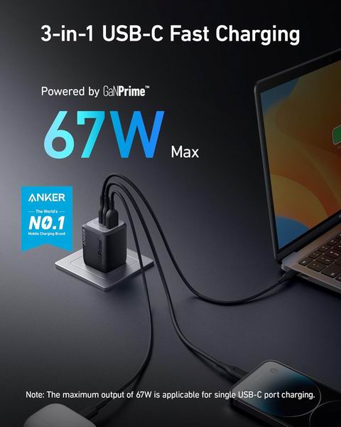 Anker Prime 67W USB C 三口充电器 48.99加元(原价 69.99加元)