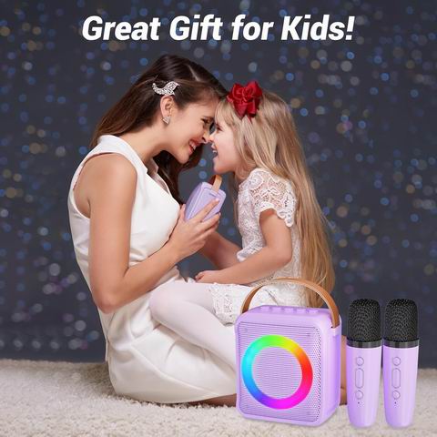 Ankuka 儿童卡拉OK机是一款便携式音箱套装,配备2个无线麦克风,支持蓝牙连接手机或平板,也可通过TF卡和U盘播放音乐,操作简单易上手。音质清晰且音量充足,内置LED灯光和4种变声模式,增强娱乐氛围。机身小巧轻便,边角圆润安全,适合3-10岁儿童使用,是家庭聚会、生日或节日的趣味礼物选择。