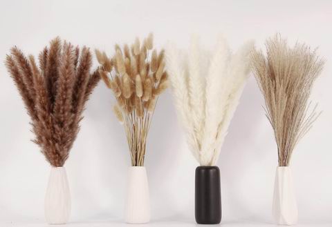 含小蒲苇草、芦苇草、白色与棕色蒲苇枝(不含花瓶),色调自然柔和,适合插入中小型花瓶自由搭配,打造波西米亚风或乡村农舍风格空间。特殊工艺使草束更蓬松,阳光下晾晒后效果更佳,无需浇水维护,可长期保存,也可喷定型喷雾固定造型。整体高度约 17 英寸(43cm),非常适合作为婚礼布置、餐桌中心装饰、派对场景或客厅卧室点缀,并配有礼盒包装与养护卡,是自用或送礼的优雅之选。