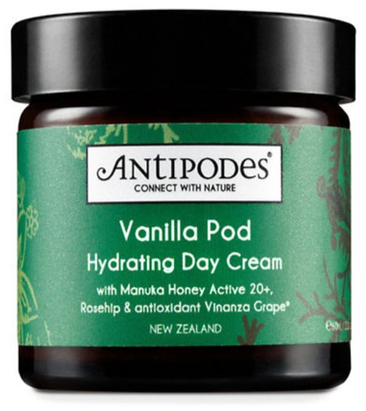 ANTIPODES Vanilla Pod Hydrating Day Cream香草荚日霜:核心成分100%纯度的牛油果树油、天然新西兰植物kawakawa提取物和活性度20+的麦努卡蜂蜜,抗氧化力强,并且有抗炎舒缓的功效。金盏花、万寿菊花萃取物,具有镇定和修复肌肤的特性。另外一种特别的成分是角鲨烷Squalane,鲨烷本身就是人体皮脂所含有的重要成分,随着女性年龄增长而来的就是肌肤缺水、松弛、老化等问题,鲨烷已成为很多高端护肤品的秘密武器,在亲和肌肤的同时也是抗衰老抗氧化的利器。