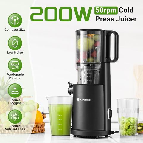 这款 Aobosi 冷压榨汁机 采用 慢速咀嚼技术(50转/分钟),通过 8级螺旋压榨系统+三重过滤 实现超高出汁率,保留更多营养与口感。其 5.2英寸超大进料口 可整果投放(免切块),搭配 54盎司自动进料斗,单次处理量提升3倍。
