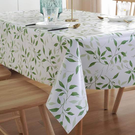 采用耐用防水的塑料乙烯基表面,防泼溅、防污渍,易于擦拭清洁。背面采用柔软的编织面料,提供防滑抓地力,使桌布保持在原位,并保护桌面免受刮擦。可用湿布擦拭清洁,不可机洗,不可漂白和熨烫。