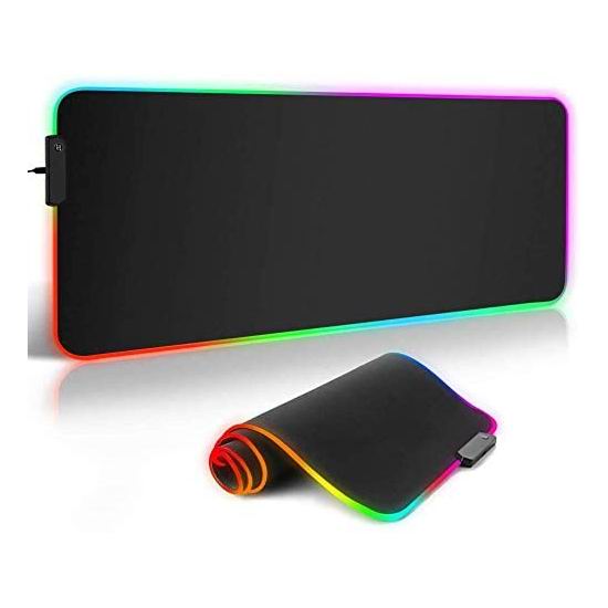 超大尺寸,底面采用防滑橡胶,高品质超细编织细密面料,确保鼠标移动平滑精准,内置RGB LED灯,具有12种照明模式。尺寸为31.5 x 11.8 x 0.12英寸,足够容纳全尺寸键盘和鼠标。