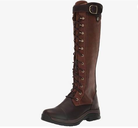 ARIAT 是美国 🇺🇸 著名的马术服饰大品牌,除了高机能、好穿耐用的马靴外,也推出大量风格鲜明、大胆的马裤与上衣,与偏经典低调的欧洲品牌风格有所不同,想尝试更个性化装备的人非常适合入手。 ARIAT 女式 Berwick Max 防水过膝靴具备出色的户外性能,采用 ATS 技术在崎岖地形上提供符合人体工学的稳定支撑;DRYMax 防水透气结构可在湿冷环境中保持双脚干爽舒适;搭配可拆卸 Pro Performance 鞋垫与轻质 EVA 中底,带来良好缓冲与减震效果。鞋底采用 Duratread 材质,并加入 5% 可生物降解稻壳成分,更耐磨也更环保,是兼具功能、舒适性与可持续性的专业长靴。