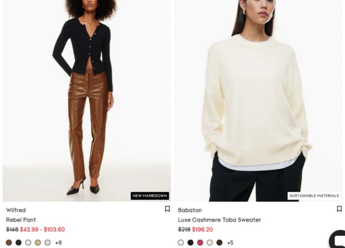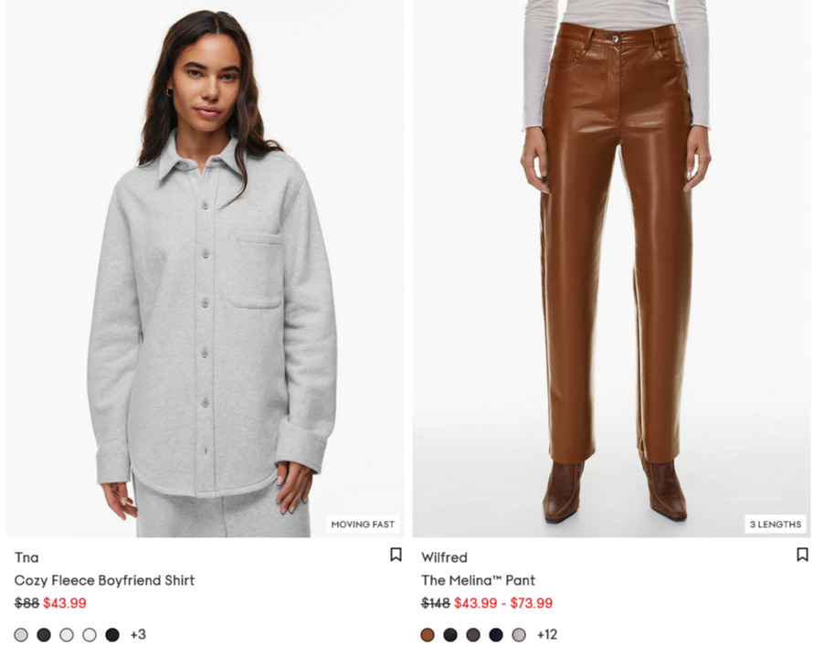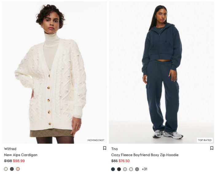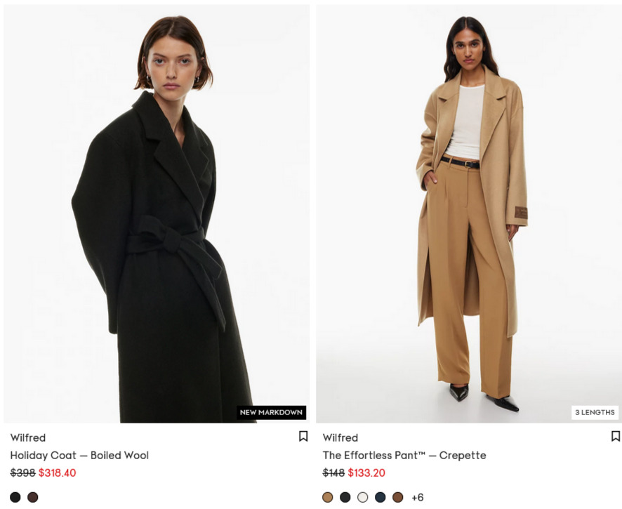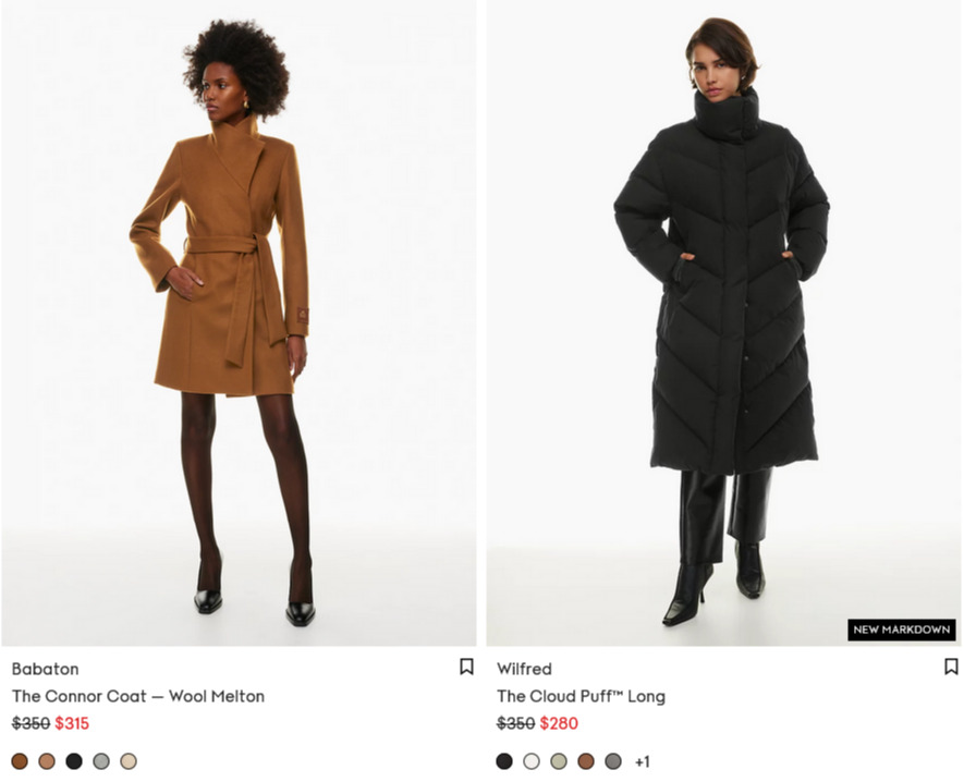 Aritzia网店销售,新款冬季服饰5折起!满50加元包邮。点击进入订购页面。
