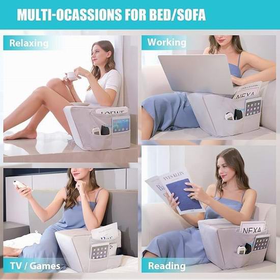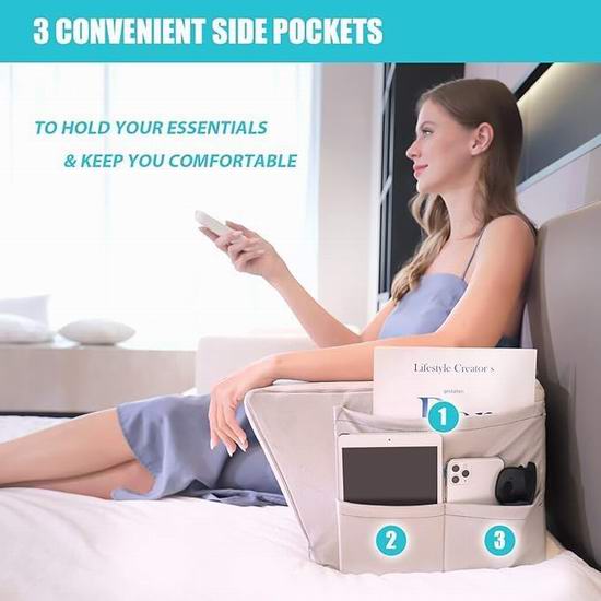 这款手臂支撑枕采用符合人体工学的设计,可为您的手臂提供最佳抬高角度,减轻关节和肌肉压力,从而促进身体健康。采用一整块优质高密度海绵制成,可在您阅读书籍、观看电视或玩游戏时提供舒适的手臂支撑。侧面设有3个方便的口袋,方便您存放物品,让您在舒适地躺下后无需起身。两个较小的侧袋可用于存放遥控器、手机或眼镜,而较大的侧袋则非常适合放置杂志或书籍。您可以将其放在床上、沙发上、椅子上,或放在地板上舒适地倚靠。解放者扶手枕为您在床上阅读、看电视或上网时提供舒适的手臂支撑。它还可以用作地板枕、椅子枕、坐枕、床上躺椅枕、扶手椅枕、电视枕和坐姿枕。尺寸为长15英寸*宽7.5英寸*高9.5英寸。