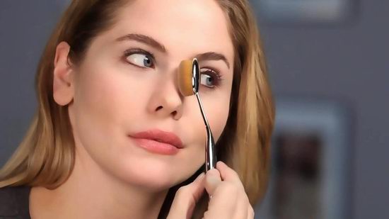 OVAL 6:刷头比7略小一点,功能大致一样,同样适用所有的粉底液、粉底膏、粉底霜等,脸小的妹子可以入这一只~而6也更适合用来上腮红、修容和散粉。也是不少美妆博主爱用的刷子,YouTube美妆博主Chloe Morello示范过一套Artis 化妆刷使用方法,其中就有oval 6。手法很简单,轻轻在苹果肌位置横扫几下,因为吃粉少,涂在脸上不会过量或者留粉,妆感轻薄。柔软的刷毛也不会在晕染腮红的时候破坏底妆,在视觉上能够削去一些棱角,增添好气色的同时也让脸部线条柔和些。