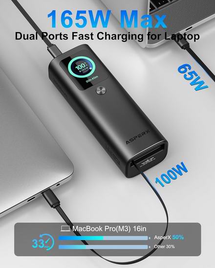 历史新低!AsperX 20000mAh 165W 笔记本电脑移动电源/充电宝5折 59.99加元包邮!