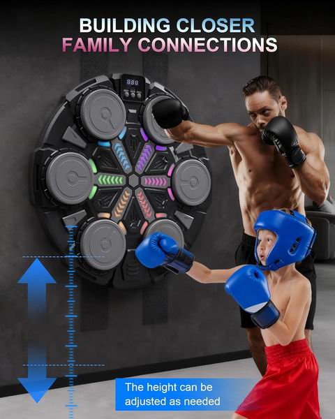 这款儿童及成人音乐拳击机集节奏灯光、动感音乐与智能训练于一体,支持拳击/节奏/对战三种模式并可独立调速,内置蓝牙与环绕立体声,让运动更有沉浸感;提供5档速度与6级阻力,兼顾拳击训练、健身塑形与体重管理,互动挑战模式适合亲子同练;壁挂式免打孔粘贴安装省空间,吸震泡沫击打面回弹稳定、分散冲击以保护手部,随附拳击手套,作为运动玩具或礼品都很合适。