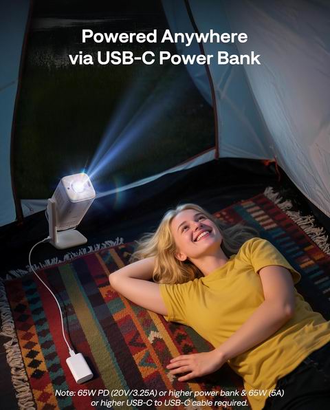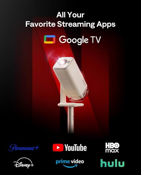 一款便携式 4K 支持投影设备,内置正版 Google TV 系统,可直接访问 Netflix、Disney+、YouTube、HBO 等 10,000+ 应用,无需额外设备。支持语音控制与儿童模式,可管理观影时间与内容。采用 USB-C 供电设计,轻巧便携,可通过 65W 移动电源随时使用。内置 10W 可视扬声器,配合 360° 杜比音效,提供沉浸式环绕音质。具备原生 1080P 分辨率、HDR10 技术与 ToF 自动对焦系统,移动时也能保持画面清晰。其 SGS 认证亮度符合 ANSI/ISO 21118 标准,性能真实可靠,非常适合家庭影院、户外露营与节日观影使用。