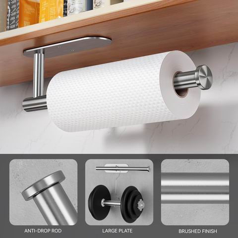 采用优质SUS304防锈不锈钢材质,通过高强度自粘胶实现免钻孔安装,其哑光黑色表面耐划痕且易清洁,紧凑的现代设计可牢固贴合于瓷砖、玻璃等光滑表面,适用于浴室、厨房等多种家居场景。