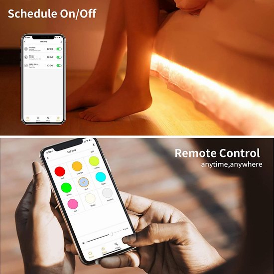 这款智能氛围灯条,采用PU包裹,比市面上裸露灯珠的灯带更安全耐用,预设多种模式,提供1600万种颜色,可产生特殊的照明效果,配备智能颜色传感器,可以通过捕捉电视画面的颜色,创造出浪漫的氛围,电视背光等功能,获得身临其境的观影或游戏体验。通过视觉上延长内容,让您感觉自己是其中的一部分。支持手机App语音控制,支持Alexa或Google语音助手控制。长度3米,适用与23-65英寸电视或显示器配合使用,可以根据需要在标记剪刀处剪短长度,剪掉的部分不能再使用。