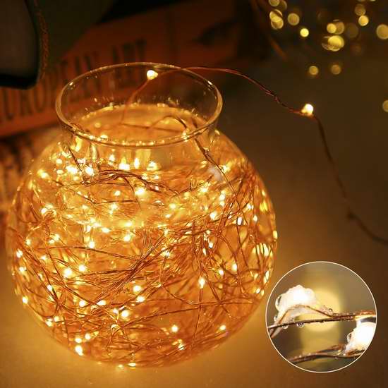 采用太阳能供电,夜间自动亮起,充满电后可持续照明8-12小时,共200个超亮暖白光LED灯珠,长达72英尺,具有8种智能闪烁模式,营造不同的氛围,防水设计,适合任何户外气候。