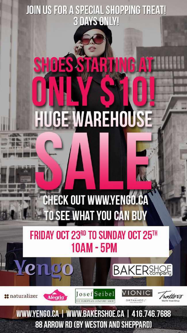 Baker Shoe Company年度鞋子特卖会将于10月23日起在多伦多举行,Naturalizer, Alegria, Josef Seibel, Vionic, Trotters, Viking等品牌鞋子10元起清仓。