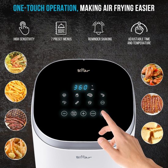 此款智能空气炸锅拥有6.2英寸大视窗,生熟焦脆全程可见。微水雾湿烤,皮脆肉嫩酥香可口,肉质鲜嫩不易干柴。360°漩涡热风逼出食物油脂,迎合爱美控油的你,多吃也无“腹”担。全息智控隐藏大屏,7大智能菜单,智能翻面提醒,分体结构加上不粘涂层,轻松端拿和清洗,油污残渣无所藏身。5.3夸脱大容量,无需频繁烤,大份美食一次出炉。
