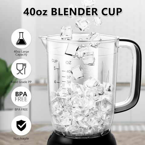 采用 700W 强劲电机四片不锈钢刀片三档速度轻松应对碎冰打果泥冷冻水果等多种需求。40 盎司(约 1.2 升)大容量搅拌杯适合家庭聚会制作冰沙与奶昔,带量杯设计便于添加食材不弄脏台面。支持自动清洁功能,只需加水加洗洁精即可一键清洗。底部防滑垫确保运行稳定低噪,内置安全锁防误触更安心,是健康饮品与日常料理的理想之选。