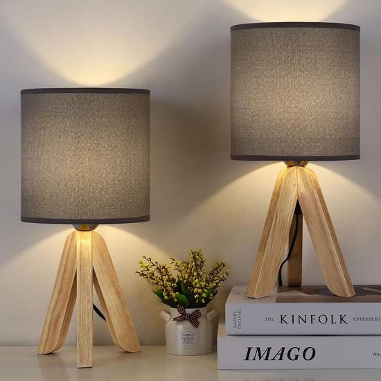 白菜价!历史新低!Vrisa 木质三脚架台灯/床头灯2件套2.9折 28.99加元清仓!单件仅14.49加元!2色可选!
