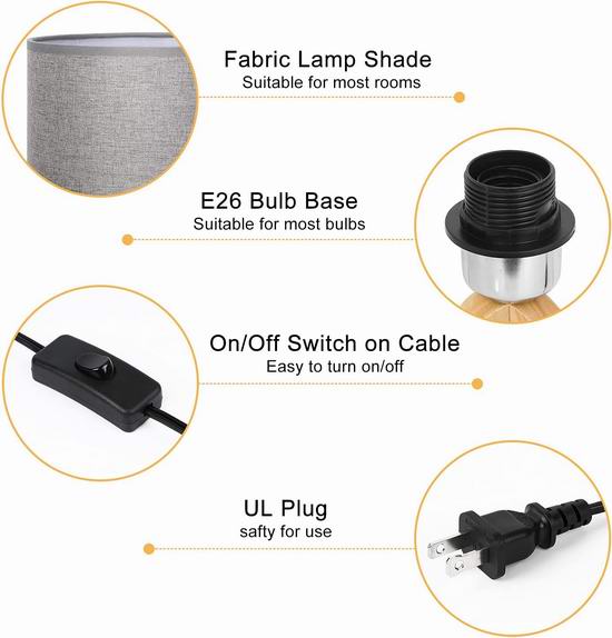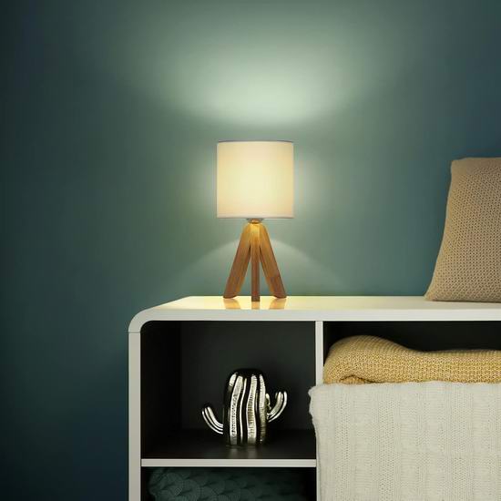 这款台灯设计紧凑大方,采用原木三脚架底座和亚麻布灯罩,设计现代时尚,每盏灯都是完美的装饰品,其独特的设计能够立即吸引眼球,可以用作床头台灯、办公桌灯、沙发边桌灯等。电源线和插头均通过了UL认证,确保床头使用安全。兼容标准E26灯泡(不包含)。