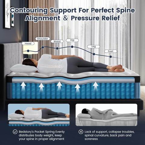 • 支撑与护脊:加厚腰部支撑与加固弹簧为压力点提供额外承托,帮助维持脊椎正确排列,缓解背痛与压力。