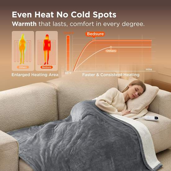 白菜价!历史新低!Bedsure 柔软法兰绒电热毯3.6折 35.99-41.99加元包邮!