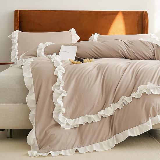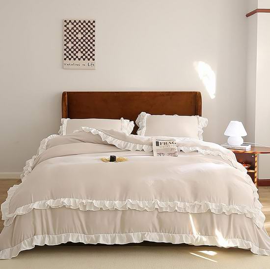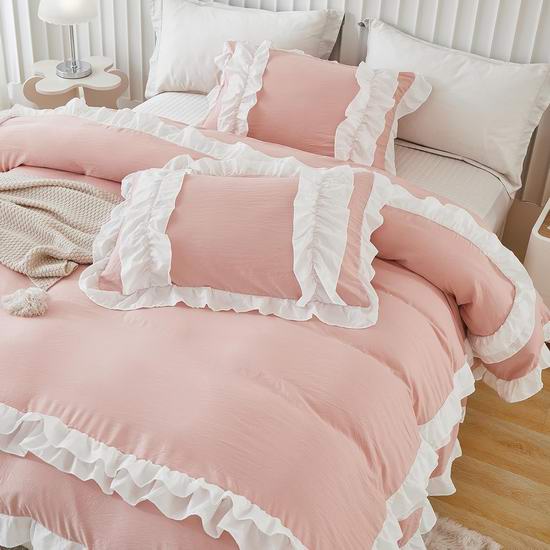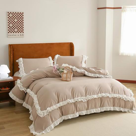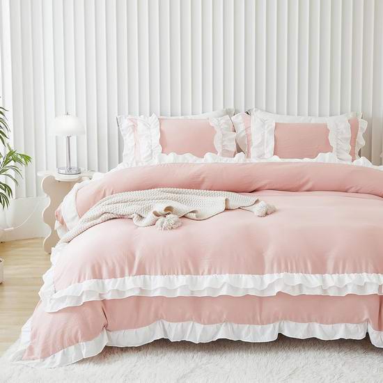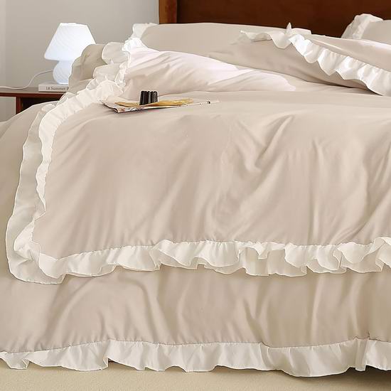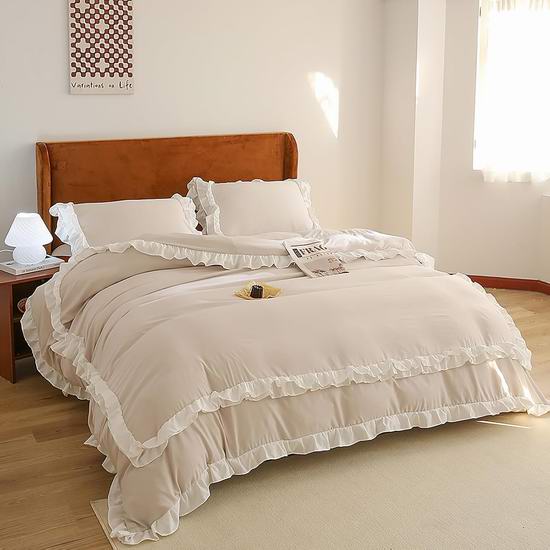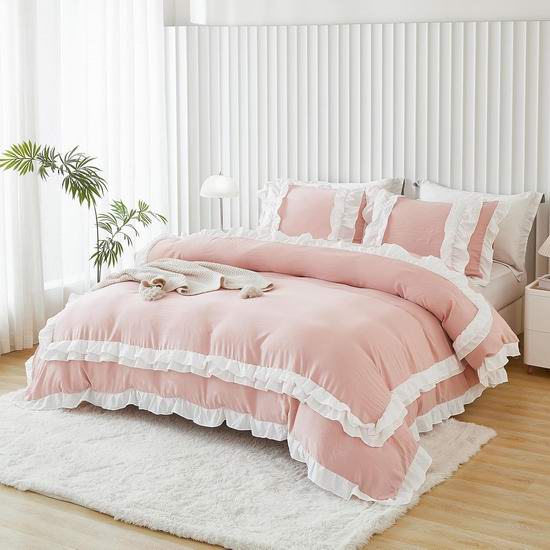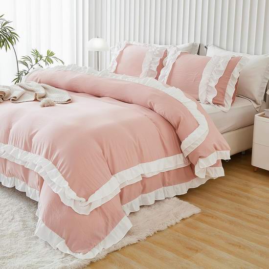 白菜价!历史新低!Bedbay 复古荷叶边 Queen/King被套3件套2.6折 19.99加元!3色可选!