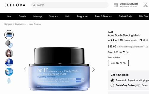 史低价!belif Aqua 水炸弹保湿面膜 75毫升 30.77加元(sephora同款价 45加元)