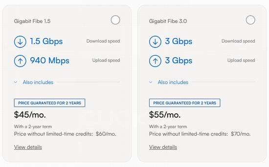 ● $45/月:下行 1.5 Gbps / 上行 940Mbps
