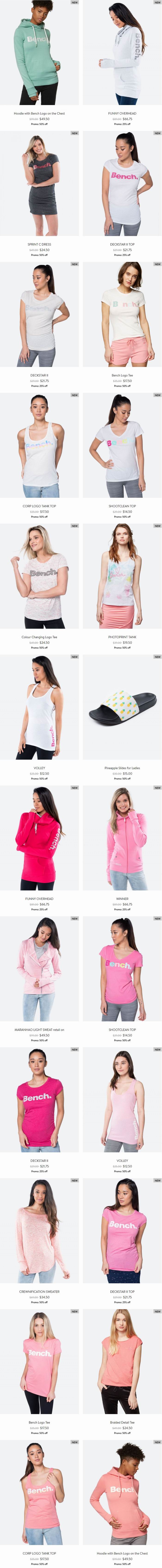 Bench网店销售,7月30日上午9点前,全场新款服饰3折起,特卖区3折起,额外4折,无需折扣码,显示价格已经打折,使用折扣码:SALE10 额外再打9折,全场包邮,点击进入订购页面