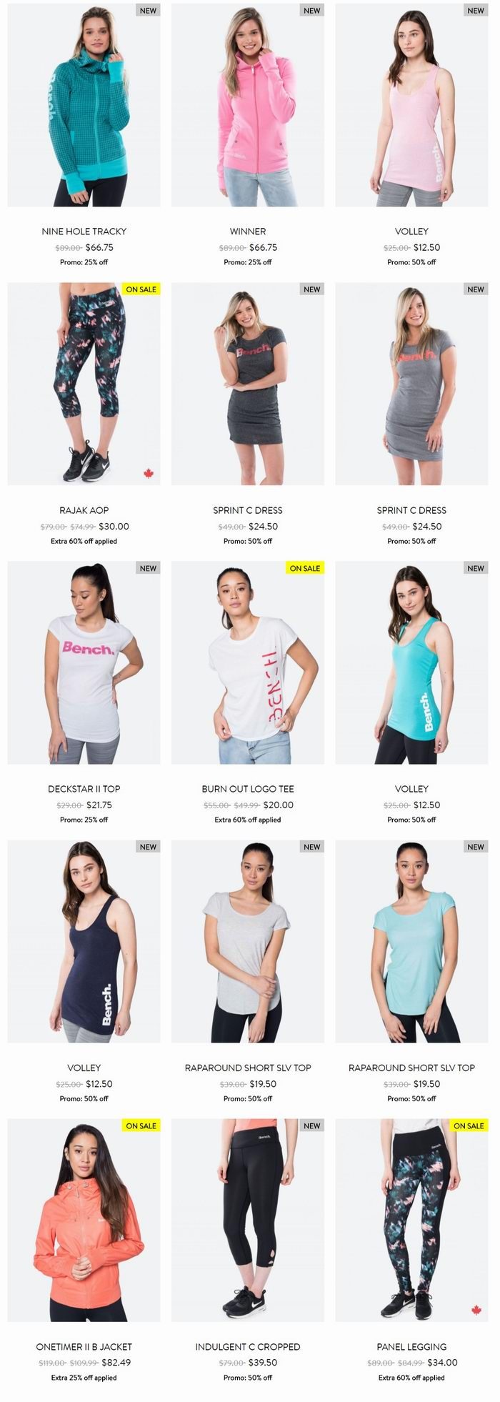 Bench网店销售,7月23日前,精选夏季服饰 3折起特卖+部分额外4折优惠!无需折扣码,显示价格已经打折,满49加元送拖鞋+包邮!点击进入订购页面。