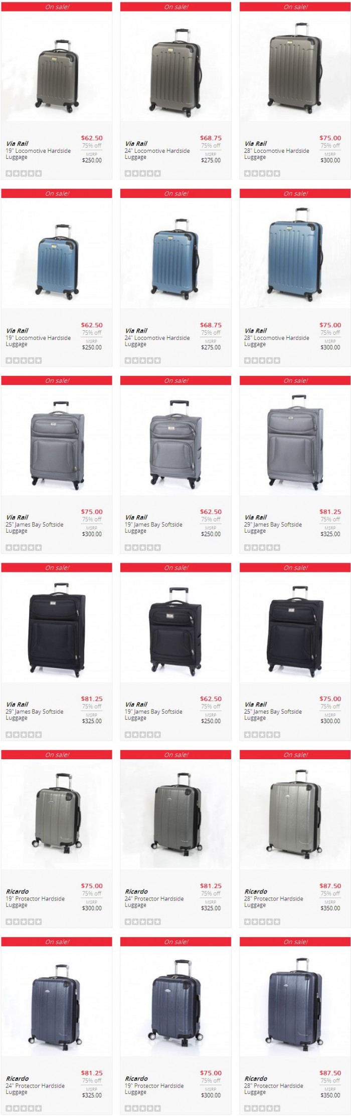 Bentley网店销售,6月26日前举行V.I.P 特卖活动,精选18款 Via Rail、Ricardo 拉杆行李箱2.5折特卖,新用户在网页左下侧登记email送8.5折优惠码(等10分钟左右收到确认信,点击确认链接后再等8分钟可收到折扣码),运费10元,全站满75元包邮,点击进入订购页面