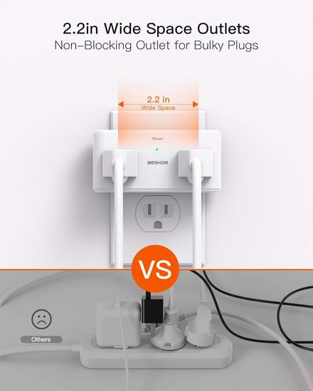 历史新低!BESHON 4个插座+3 USB充电口 墙插2件套4.2折 16.99加元!