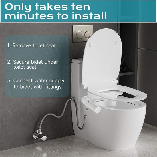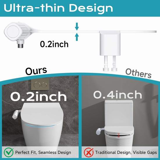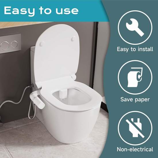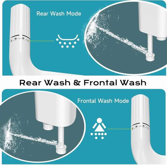 这款马桶便洁宝为您提供便捷的清洁功能和更健康的生活方式,男用后洗功能喷射较强水流,有效清洁臀部;女用前洗功能则喷射柔和水流,温和清洁女性私密部位。两种模式切换简单,通过旋钮轻松调节水压,确保用户能够根据个人需求获得舒适的使用体验。厚度仅0.2英寸,能够轻松安装在标准两件式马桶中。无需电源即可运行,安装方便。
