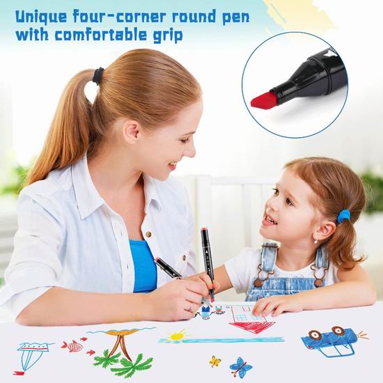 • 鲜艳和叠加:酒精标记是油基的,具有很强的色彩覆盖力,不同的颜色可以轻松混合和叠加,适合儿童日常手写、美术课绘画、动画、专业设计等。