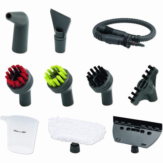 1000瓦强力高压蒸汽喷枪,简单易用,无需使用化学清洁剂即可完成清洗及消毒,附送喷头,加长管,刷头等等配件,方便清洁各种硬表面及边角缝隙。