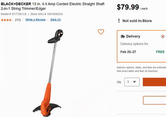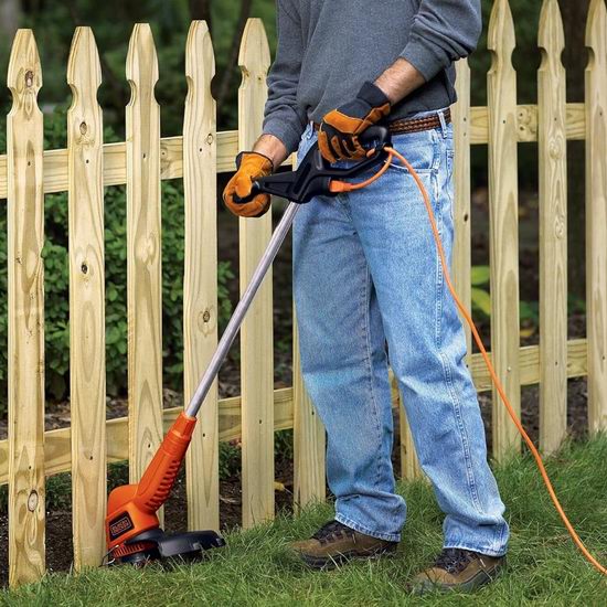 采用Groom 'N' Edge 刀头可 180 度旋转,只需几秒即可在割草机和修边机之间轻松切换。用作修边机时,边缘导向装置可帮助您修剪人行道和车道边缘。提供 13 英寸的切割宽度,并配备 Black & Decker 独有的自动送线轴 (AFS) 系统,可自动送线,避免碰撞;离心力可根据需要自动送线。内置辅助手柄提供最大的舒适度和操控性,而电线固定系统可防止电线意外脱落,确保连续修剪。强劲的 4.4 安培电机以 10,000 转/分钟的转速驱动电线旋转,是修剪茂密杂草和草坪的得力助手。重量仅4.5磅,轻巧便携,让您使用起来更加轻松自如,不易疲劳。厂家提供两年保修。