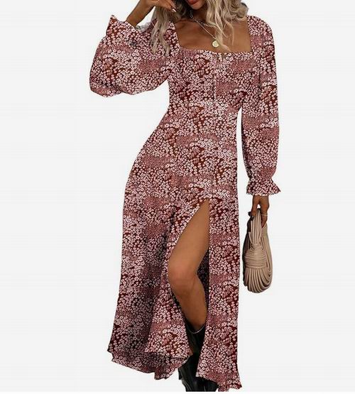 BLENCOT 花卉印花泡泡长袖方领系带连衣裙 37.49加元(原价 49.99加元)!多款可选