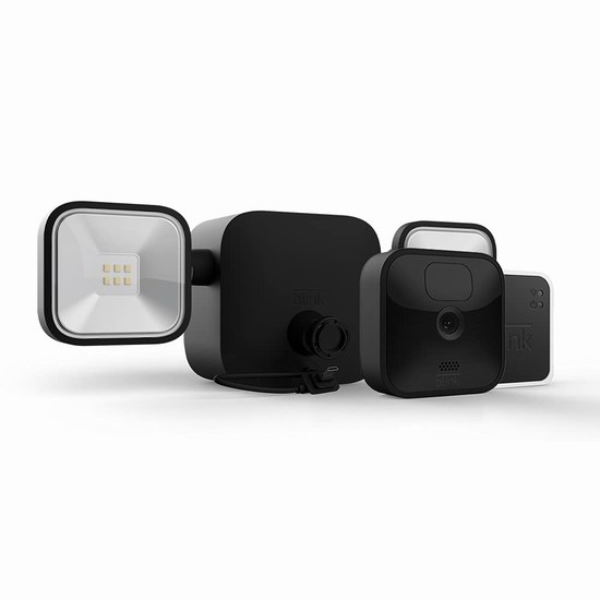 此款安防摄像头将超亮LED泛光灯和Blink Outdoor摄像头合二为一,采用锂电池供电,彻底摆脱布线烦恼,具有700流明高亮度,支持运动检测,在监测到移动物体之后会自动打开泛光灯,支持1080P视频录制,支持红外夜视,具备110度运动检测角度,支持2.4 GHz WiFi,可通过手机、平板或电脑获取警示通知,并远程查看和控制摄像头,便于随时随地查看房屋周围的活动情况,支持Alexa语音控制,支持与Alexa设备配合使用,支持双向音频对话功能,帮助业主识别入侵者,通过远程控制与门铃互动,阻止入侵者,为家庭提供妥善的安全防护。