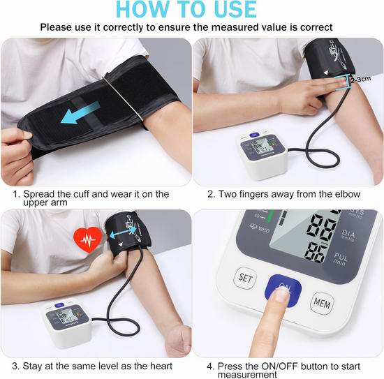 这款血压计采用高性能芯片,可提供准确可靠的测量结果,可以存储两个用户的读数,支持通过语音警报快速获得结果,具有较大的袖口尺寸,可适应22至42厘米的臂围,可确保大多数用户佩戴舒适。小巧轻便,非常适合居家或旅行时使用。