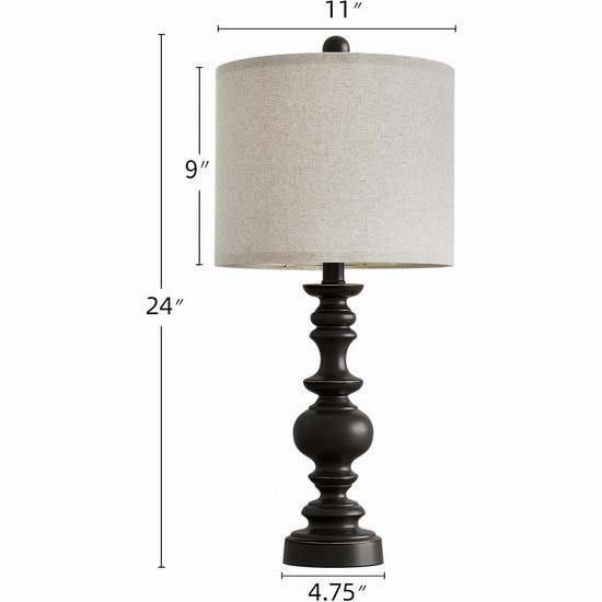 超级白菜!历史新低!BOBOMOMO 24英寸大号 中世纪复古台灯/床头灯2件套 29.99加元清仓!单件仅14.99加元!