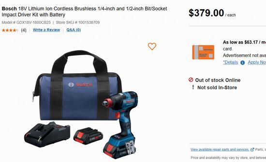 Home Depot同款双电池版售价379加元,亚马逊相当于打了3.4折!