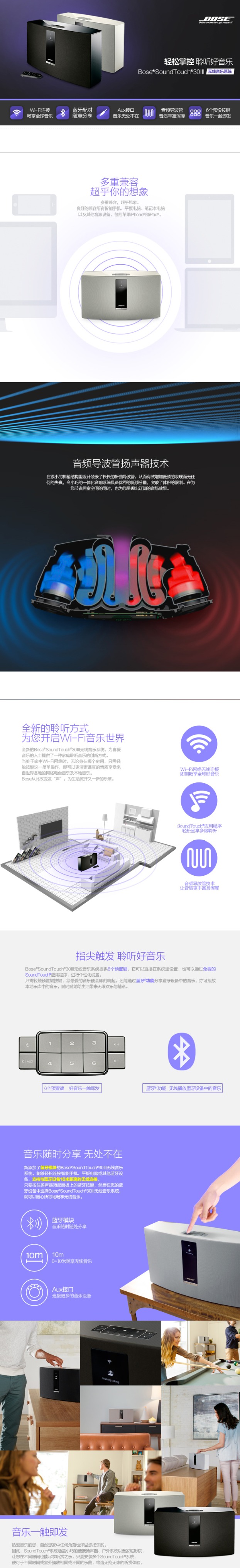 这款Bose音箱可以说同时兼具智能与音质。在音质上,它采用了音频导波管技术,让音质更加丰富且浑厚。特质单元能输出清脆中高音,能呈现足够媲美现场的逼真人身。在智能方面,它同时兼容蓝牙和 WiFi 两种连接方式,利用 SoundTouch App,你可以亲自将音箱甚至是遥控器上的按钮进行编程,让你自己定义自己的操控习惯。