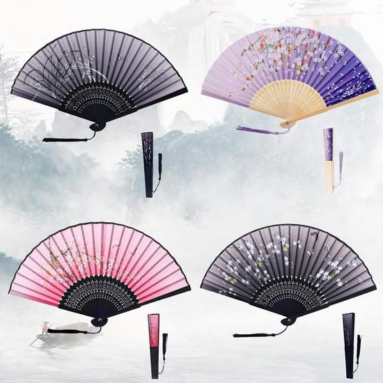 历史新低!BOXOB 中式花卉流苏折扇4件套3.9折 5.11加元!