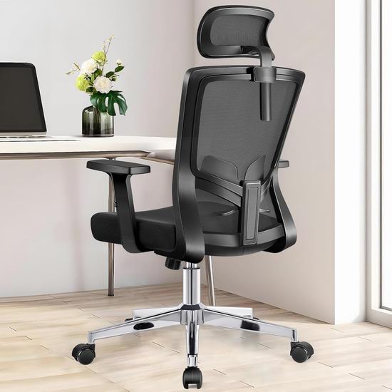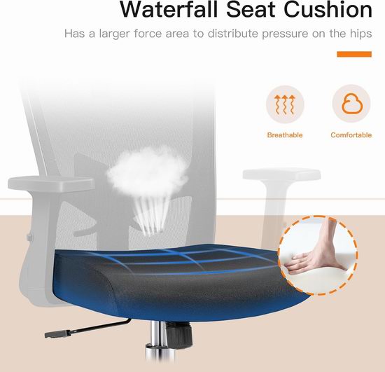 这款高靠背办公椅采用人体工程学设计,配有S型弧形靠背,提供良好的背部支撑,有效缓解疲劳。坐垫厚度为3英寸,确保舒适体验。人体工学椅最大倾斜度可达120°,头枕和扶手可上下调节,蝴蝶腰部支撑提供精准的腰部支撑。家庭办公椅采用透气网布和钢制底座,适合办公室、书房、会议室和游戏室。办公桌椅配备3级燃气升降机,最大承重300磅,确保稳定性和耐用性。椅子和脚轮可360°旋转,提供更大的灵活性和舒适性。